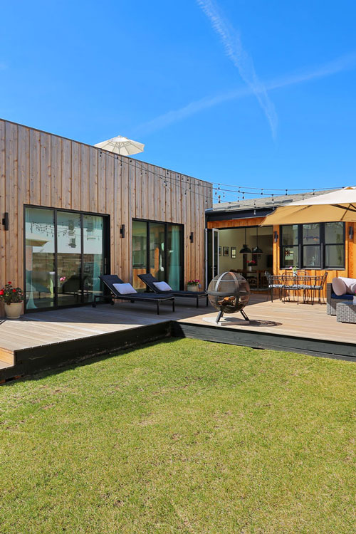 New Construction designed and created by Gabor + Allen Inc. Featuring European sleek lines and finishes. This home is flooded with natural lite, situated on a view lot in one of the most desired Sunset Park locations. From the time you enter through the Dutch door you will find a seamless flow from the open living room with a gas burning fireplace, to a chef's dream kitchen with high ceilings, skylites, soapstone granite counter tops, center island, Wolf range, dual zone wine fridge, an open dining area leading out through the glass concertina doors to the oversized wooden deck area, sports court and roof top deck with partial ocean views. A private master suite overlooks the garden area. This home features a keyless entry, sound system, heated bedroom flooring, central heating and air, oversized garage designed to accommodate a loft area, professionally landscaped gardens. This home depicts the true essence of California living!